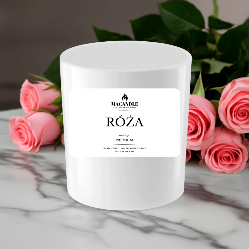 Luksusowa Świeca Sojowa RÓŻA MACANDLE – Ręcznie Robiona, 100% Wosk Sojowy, Zapach Ogrodu Różanego