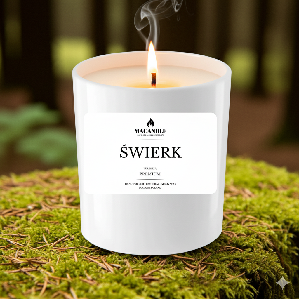 Wprowadź do swojego domu świeży, zimowy zapach lasu dzięki naszej limitowanej świecy sojowej ŚWIERK od MACANDLE. Stworzona z myślą o miłośnikach naturalnych zapachów igliwia, natury i aromaterapii. Ta ręcznie wytwarzana świeca jest idealna, aby stworzyć orzeźwiającą i świąteczną atmosferę w Twoim domu.